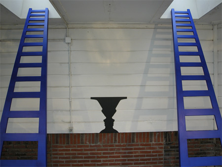in an old aviary in a small city park, a floor painting, photographs, light objects, mirrors and other objects have been brought together Location: Enschede